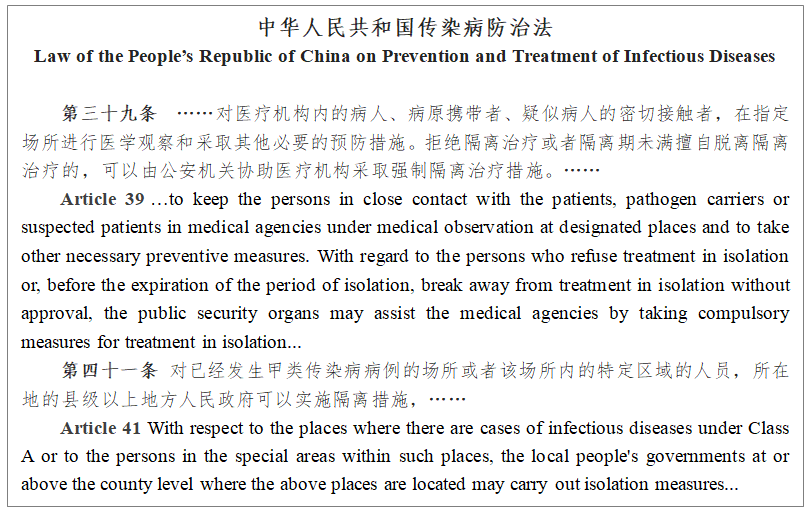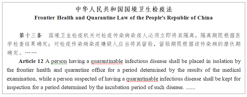 Note:The English version of the above legal provisions is from the official websites of the Supreme People's Court of PRC, the Ministry of Foreign Affairs of PRC, the National Health Commission of the PRC and other government departments. Parts of the quote are from the www.pkulaw.cn.