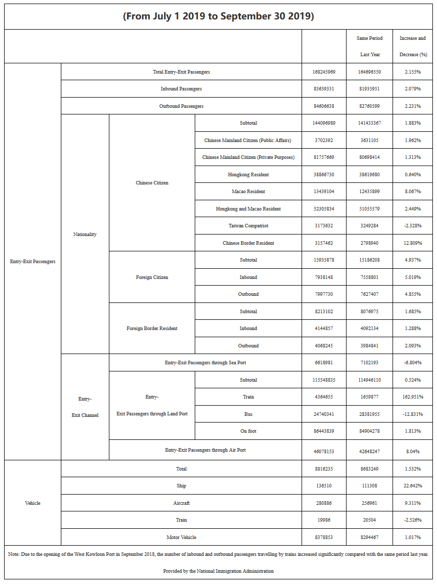 • Comprehensive Statistics on Entry-Exit Frontier Inspection (Q3, 2019)